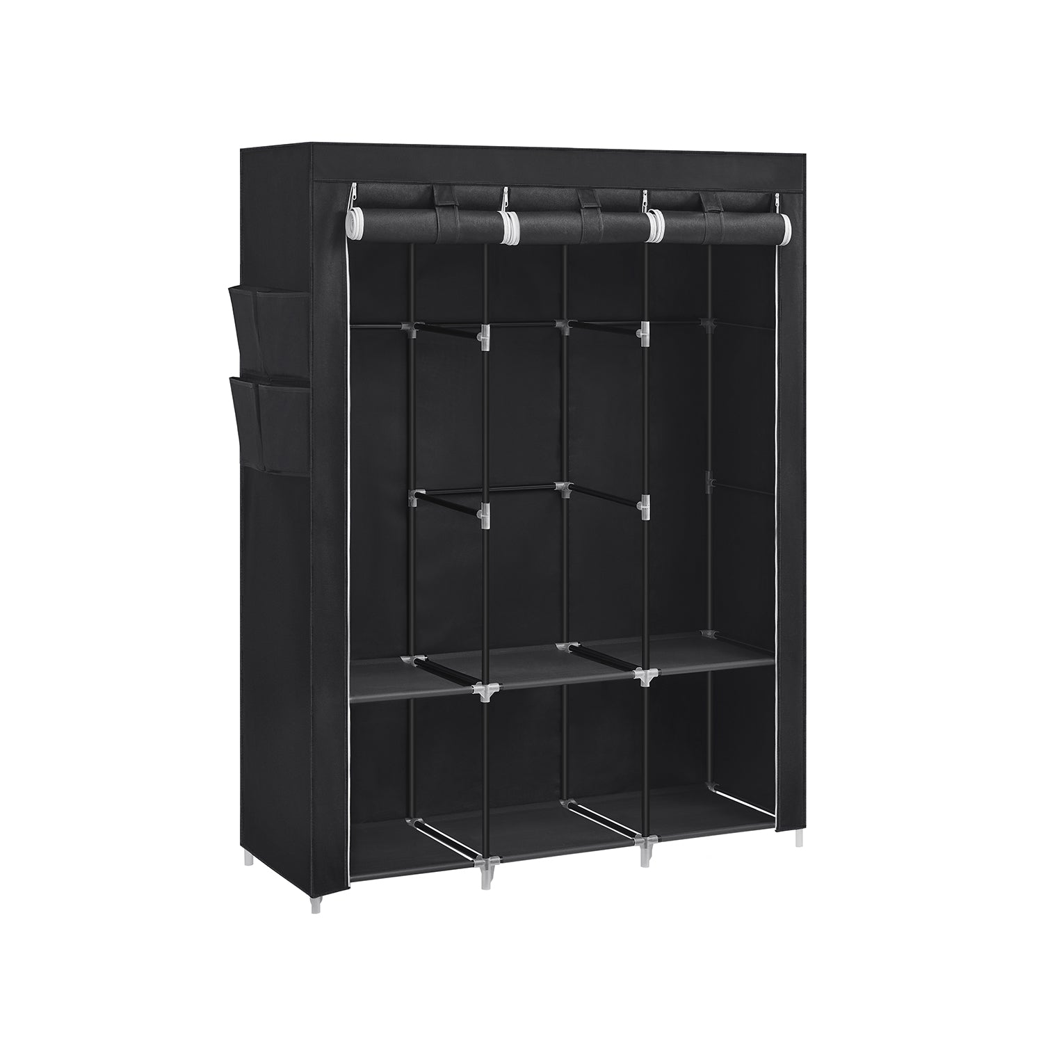 Szafa materiałowa z 3 drążkami na ubrania i 4 kieszeniami bocznymi